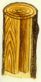 The drawing at the left shows boards being cut from a log. What if there was a small branch